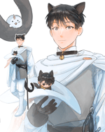 Puss in Boots KDJ Standee with a bean sized Cat Joonghyuk in his hat and Biyoo on his tail.